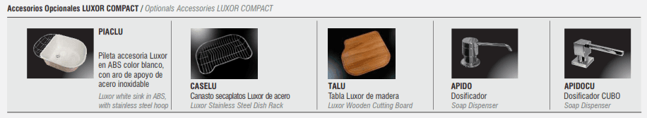 Los accesorios que se pueden conseguir independientes a la pileta son el dosificador de detergente, el canasto secaplatos, la pileta accesoria y la tabla de madera.