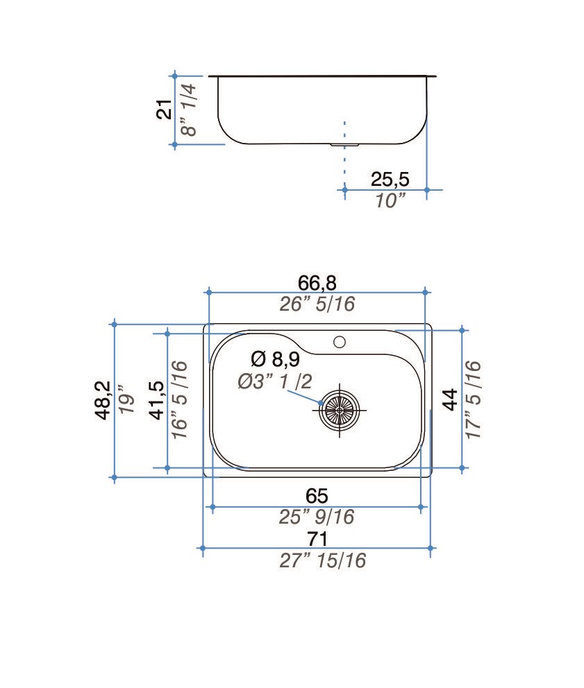 Pileta de acero inoxidable encastrable modelo Luxor 71. Pileta simple de gran diseño la cual se puede utilizar con los accesorios que están diseñados para este modelo, los que permiten la utilización al máximo de la pileta.