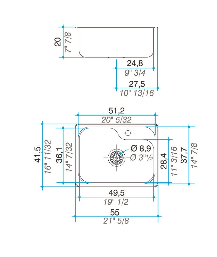 Pileta de acero inoxodable encastrable modelo Luxor mini.