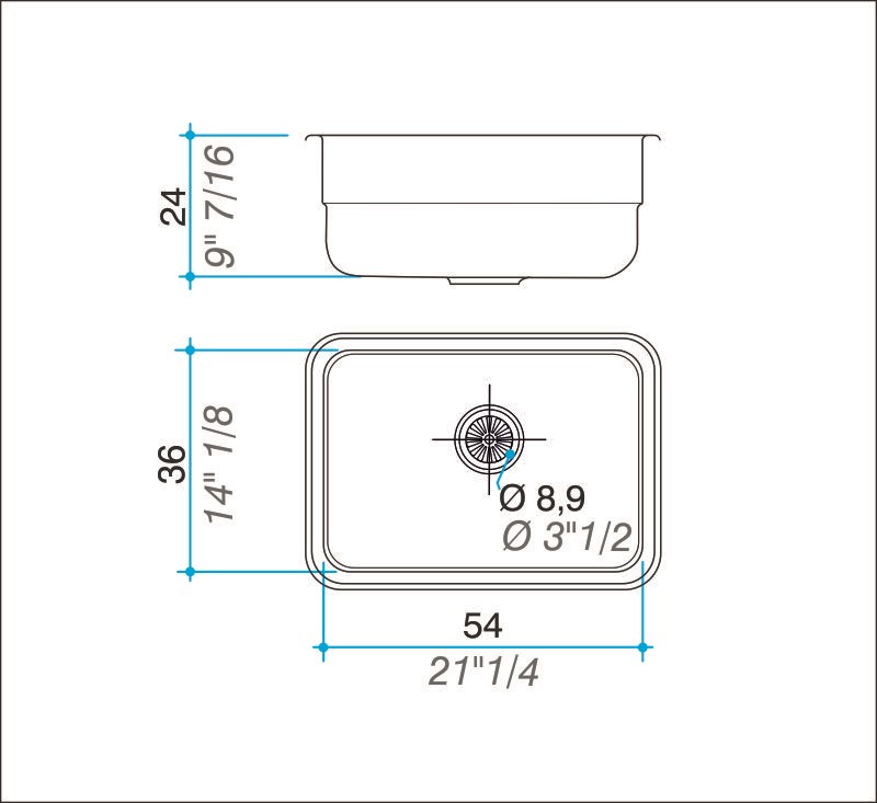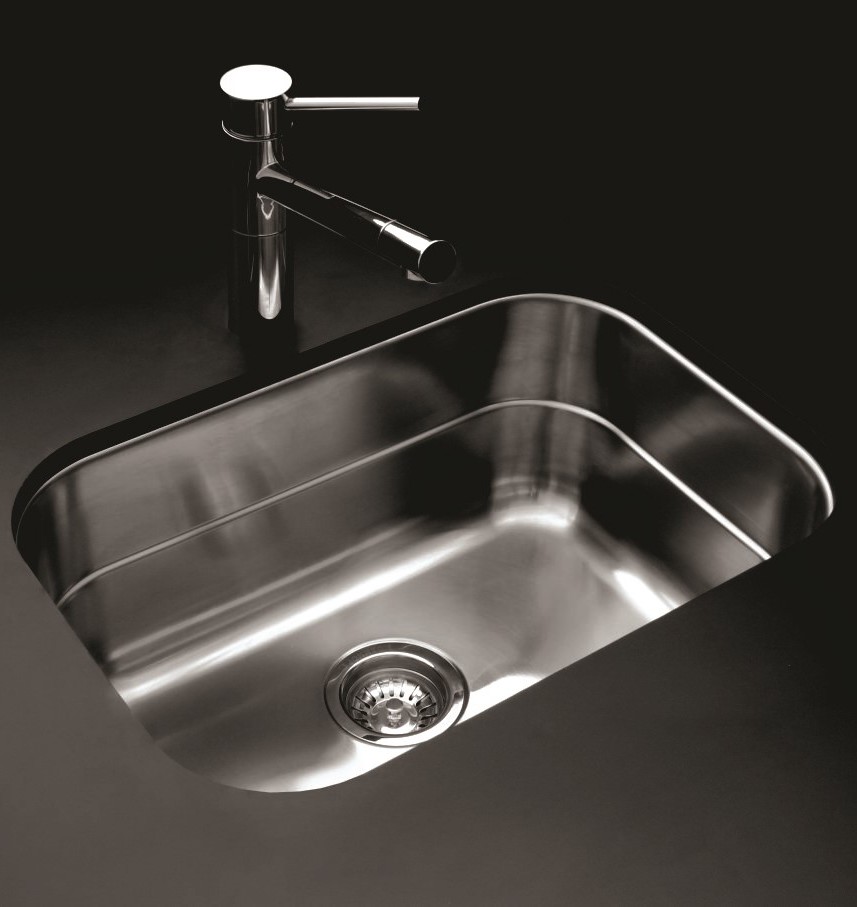 Pileta de acero inoxidable simple bajo mesada.